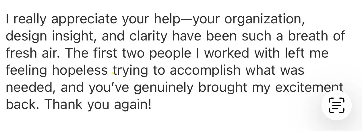 Whether you’re drowning in files, stuck with an unfinished sales page, or can’t get your content to actually go out, I’m here to handle it.